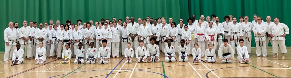 110 people trained and a record 95 students took and passed their kyu grading – 57 from Cambridge Karate Dojo, 12 from Cambridge University Karate Club and 25 (another record!) from Northstowe Karate Club – with Sensei Roy Tomlin MBE. Very well done to all!